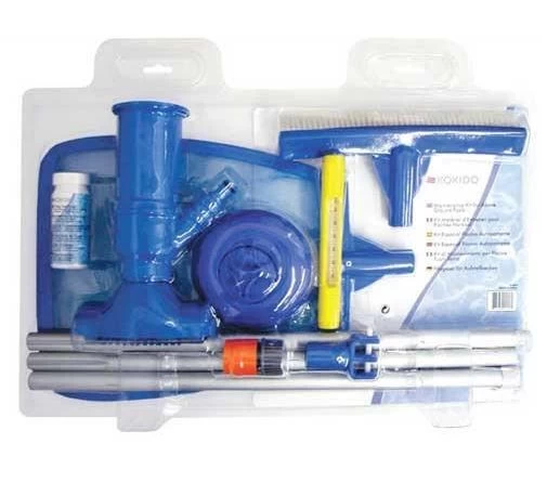 The splasher pool starter kit contains everything necessary to clean and maintain a small splasher pool, either with or without a filtration system: